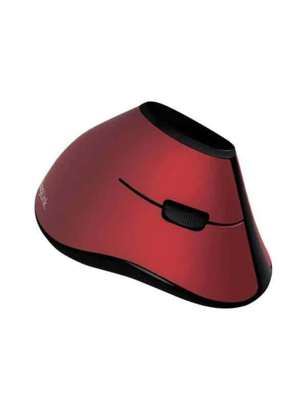 Lodret mus, ergonomisk, optisk, 5 knapper, trådløs, 2.4 GHz, trådløs modtager (USB), rød