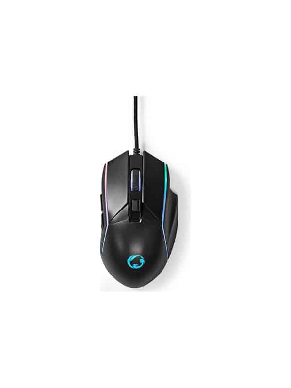 Mus, ergonomisk, højrehåndet, optisk, 6 knapper, kablet, USB, sort, detailsalg, gaveæske